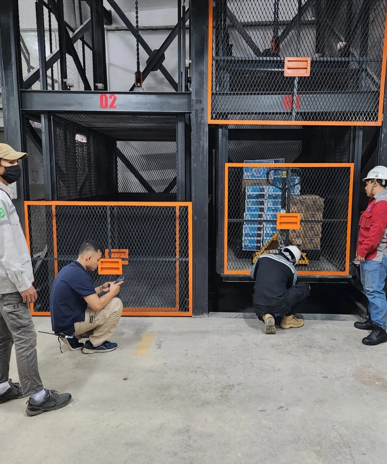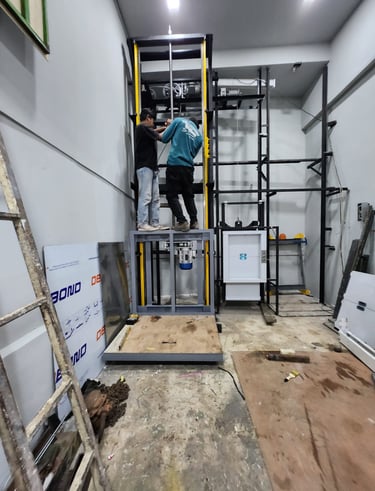 Desain dan instalasi lift makanan cepat dengan dukungan engineer berpengalaman.